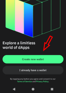4.3. You will be presented with one more screen, for which I do not have an illustration, where you will need to agree to the Trust Wallet agreement terms by checking the box in the bottom left corner before proceeding to the next page.