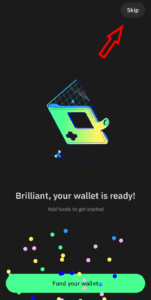 1.4. And then select “skip” on the top right corner for funding your wallet.