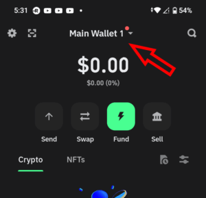 2.6. Click on “main wallet” at the top center.