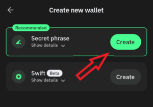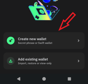 2.3. Select “create new wallet” at the bottom of the screen.