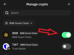 2.13. Toggle the switch on the right side of “BNB Smart Chain”